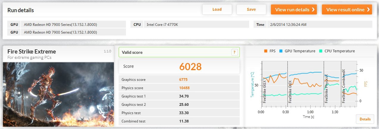 Overall the Intel i7-4770k and AMD Radeon HD 7990 did pretty well using the 3DMark 11 FireStrike Extreme test. Everything ran at stock speeds which does give me headroom to overclock both the CPU and GPU to up my score.