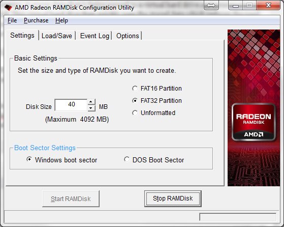 AMD Radeon RAMDisk Configuration: