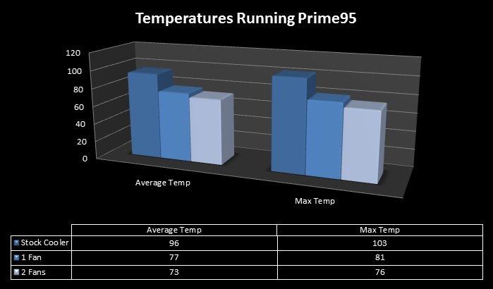 The next benchmarks is temperatures I collected using Prime95 with the Noctua cooler and the stock HSF cooler from AMD.