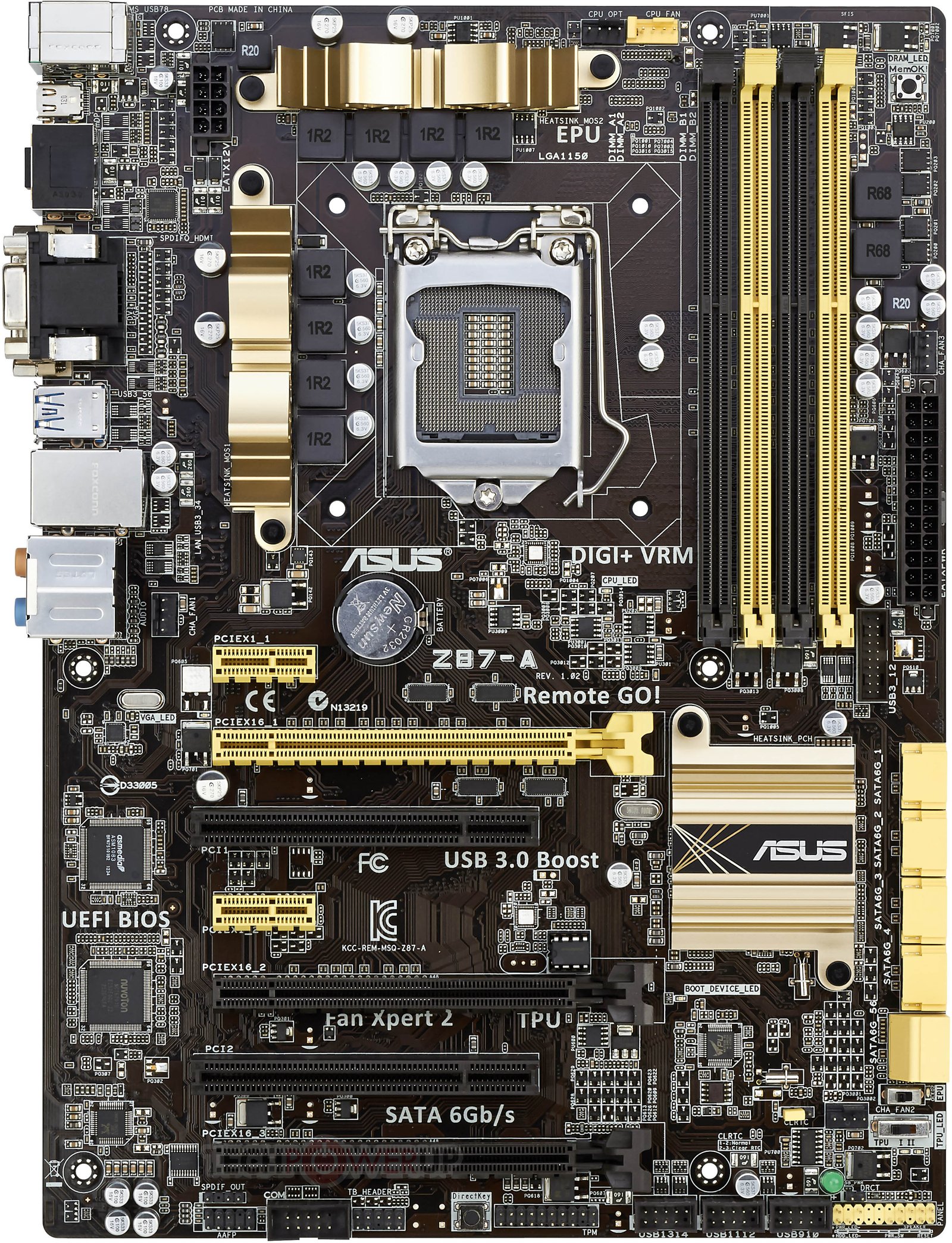 The Z87-A is another entry level motherboard that is a slightly better version of the Z87-C model. It includes a few more features and slots of to use GPUs in SLI or Crossfire.