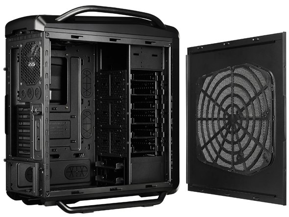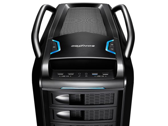 The Cooler Master Cosmos II has always been that case that is well lets just say majestic in my eyes. It could do no wrong but on the other hand I could never justify the price tag no matter how much I wanted to. Now we have the its little brother coming out in the spot light, the Cosmos SE. This was first shown off at Computex earlier in the year which has had some pretty good buzz surrounding it since not everything was known. Well now Cooler Master has let the cat out of the bag and has released the full specifications and features along with some good pictures. Currently pricing isn’t listed just yet but it has been seen in Europe for €175 which if that translates over to the US would be about $230 which sounds about right for all the options this case offers for storage, cooling, space, ect. I could actually justify this if it stays in that price range. So without further ado here is the pictures, specs, and some diagrams of the Cosmos SE!