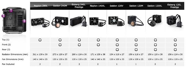 - Superior liquid cooling support: 120, 240, 280 and 360mm radiator; supports 3 radiators at once – 120+280+360mm