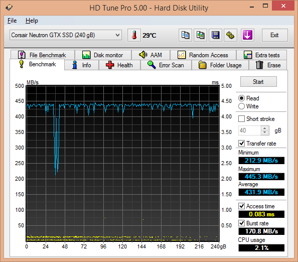 Corsair Neutron GTX 240GB SSD HD Tune Pro Benchmarks
