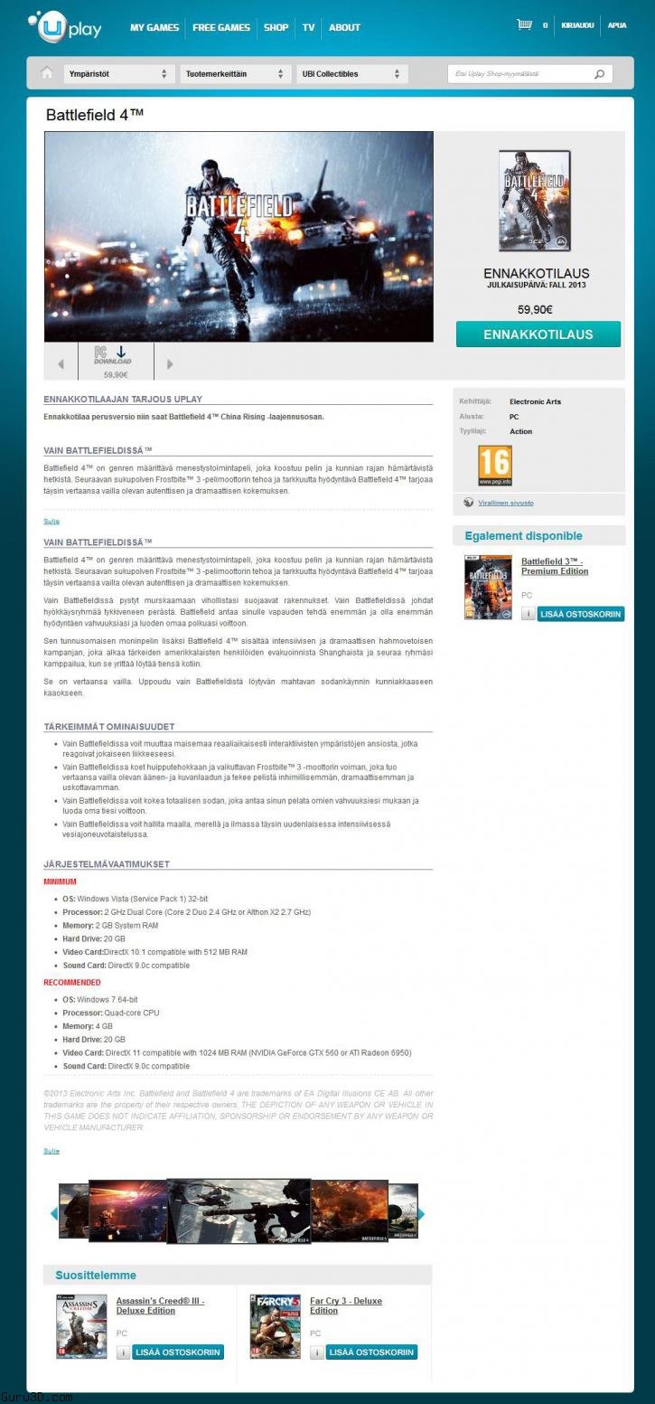 So personally I think the Battlefield 4 system requirements are a screw up of someone who works on Ubisoft’s Online Store.