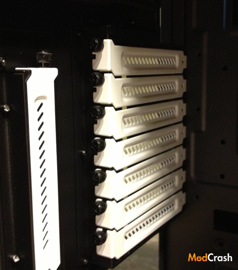 Fractal has done a nice job of having a black and white theme that looks pretty good and the expansion slots are all removable with thumb screws, so while I would still suggest using a philips head screwdriver to get them off because of their proximity to the rear of the case, they can still be removed by hand if you have small enough fingers.