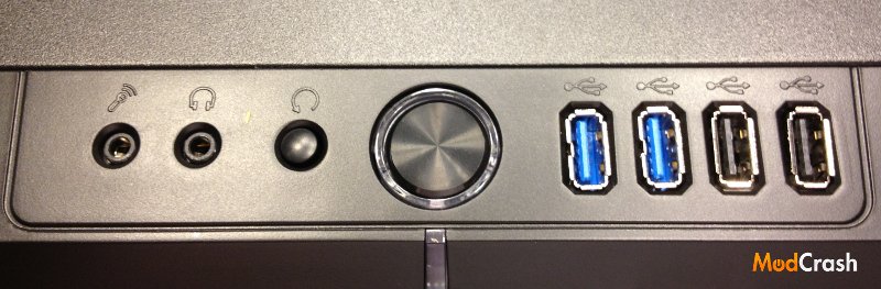 The front panel for the Define R4 isn’t anything revolutionary but it does look pretty nice. You have two USB 3.0 and two USB 2.0 ports, so you have multiple spots to plug in phone chargers, flash drives, etc. You also have your standard headphones, mice, reset, and power buttons. Around the power button and below it has blue LED lights to give this case some style. In my opinion the black/blue color scheme in the front looks really well together.