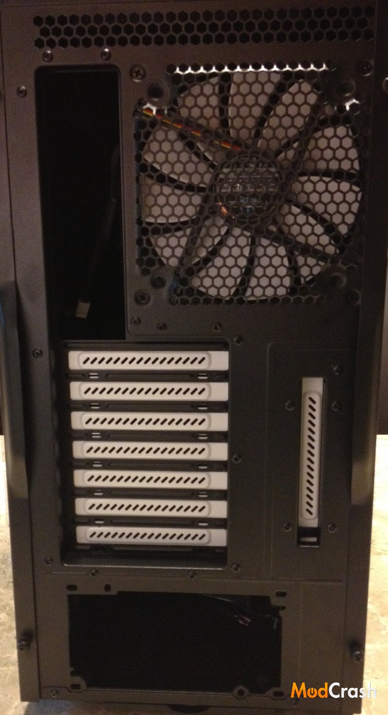 The Rear of the Define R4 case is rather standard. You have your expansion slots, I/O shield slot, and PSU slot. Fractal also went ahead included one of their silent R2 fans for rear exhaust.