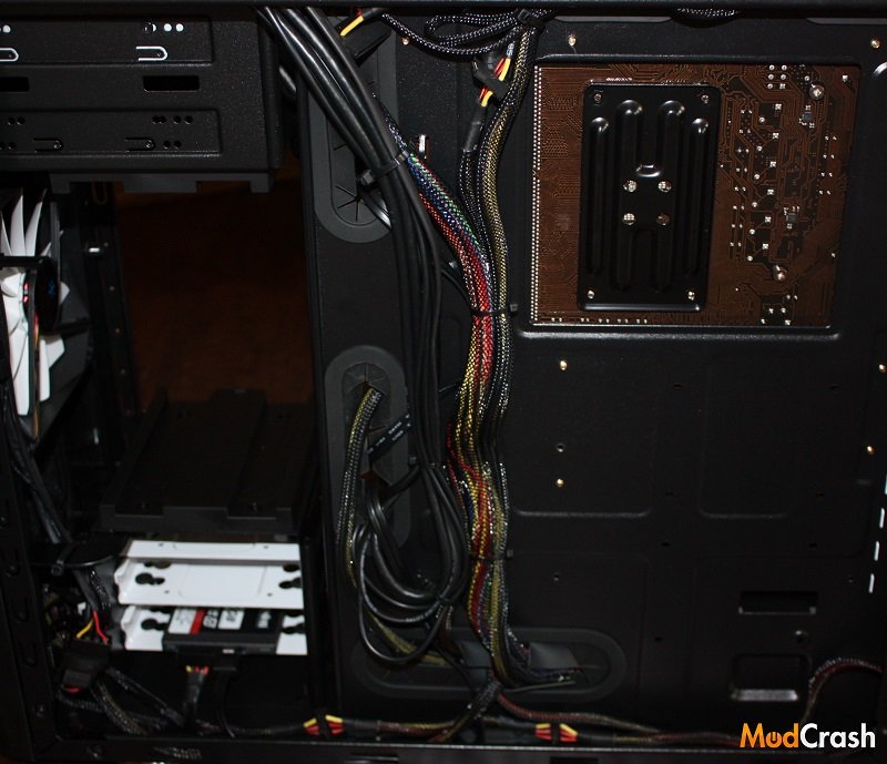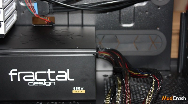 Fractal built the Telsa R2 PSUs with aesthetics in mind. They had their logo imprinted in the metal on top and didn’t use a lot of flashy colors but kept with a mostly white and black theme and a little bit of gold where it needed to be. So the Telsa R2 series and the 650W model in particular will look clean in your case depending on the color scheme. Now while I like the looks and everything of the Fractal Design Tesla R2 650w PSU, I was disappointed that the PSU was not modular. Even semi modular like the current Corsair TX 850M would have been nice. I do love the fact that Fractal did go ahead and sleeve the cables to help keep the clutter to a minimum but I just think with 4 pin molex connectors being used less and less that for the price of this PSU it should have been semi or fully modular. Now having said all of that this PSU does pretty well when it comes to cable management.