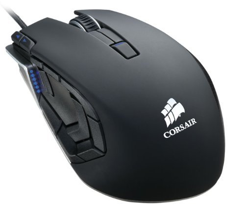 Very comfortable (for palm grip), 8200 DPI (adjustable – via software and on-the-fly buttons), Cool “sniper-button” to instantly drop the DPI in FPS’s. Great looking with loads of light even LEDS that change colour acording to mode. 10 programmable macro buttons with 5 profiles – leading to a total of 50 options. Quality braided cable. Very reasonably priced around £50/$75 when compared with likes of corsair etc.