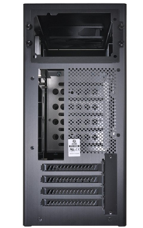 While being small (180×388 x480mm (7.0”x15.2”x18.8”) WxHxD), the PC-V360 is able to hold an impressive amount of hardware. VGA cards up to 310mm (12.2”) and power supplies up to 280mm (11.0”) are supported. The two removable hard drive cages hold a total of five 3.5” and 3 2.5” drives.
