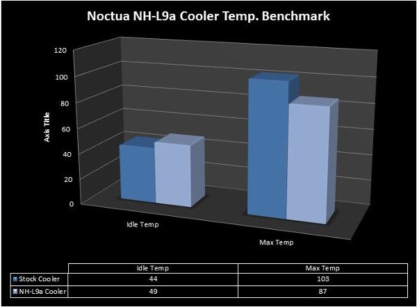 I want to put a warning on our benchmarks. This CPU cooler was designed and built for sub 65W TDP chips but surprisingly we found that it kept our AMD APU cool even under 100% load testing using Prime95. Prime95 was only ran for an hour due to while it did hold its own it did keep constantly creeping up in temperatures. It looks like you could use this cooler for chips above the 65W recommended TDP if heavy loads aren’t constantly being used. Below is our results: