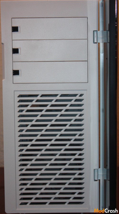 Here is the front of the case with the door open, as you can see a non removable dust filter is situated in front of the intake fan to help keep dust out of the case.