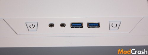 Front I/O panel that is very basic with two USB 3.0, headphone, mic, power, and reset button.