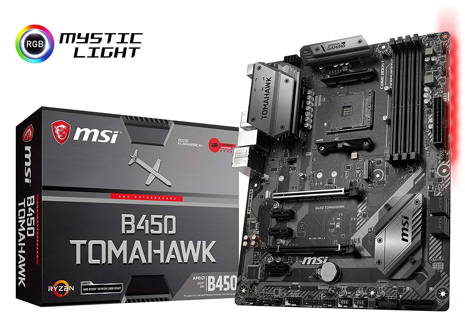 MSI Arsenal Gaming AMD Ryzen 1st and 2nd Gen AM4 M.2 USB 3 DDR4 DVI HDMI Crossfire ATX Motherboard (B450 Tomahawk)