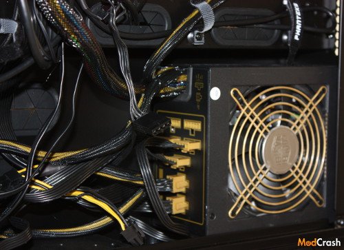 You will have to excuse my cable management skills on this build but I love how this case mounts the PSU in the back. I would almost say I got lazy with cable management because it definitely wont be seen at all except my wires actually connecting to the motherboard. When the Corsair 540D came out I was very interesting in having the PSU mounted behind the motherboard and not in sight but did not like how wide the case was to do that whereas Phanteks simply just made it where you mount the PSU on the side and you hardly notice it every again. Oh yeah and when you do need to change things around, add, remove, or whatever you feel like you no longer have to undo and redo all your pretty work you might have done for the people looking inside you case.
