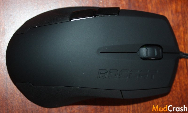 An overview of the top of mouse gives you better idea about how the ROCCAT designed the ergonomics of the mouse specifically for right-handed people. Depending on size of the hand this mouse can be used with a claw or palm grip. I had to use this mouse with a more claw type grip since it was not as long or wide as what I am used to using with my preferred palm grip.