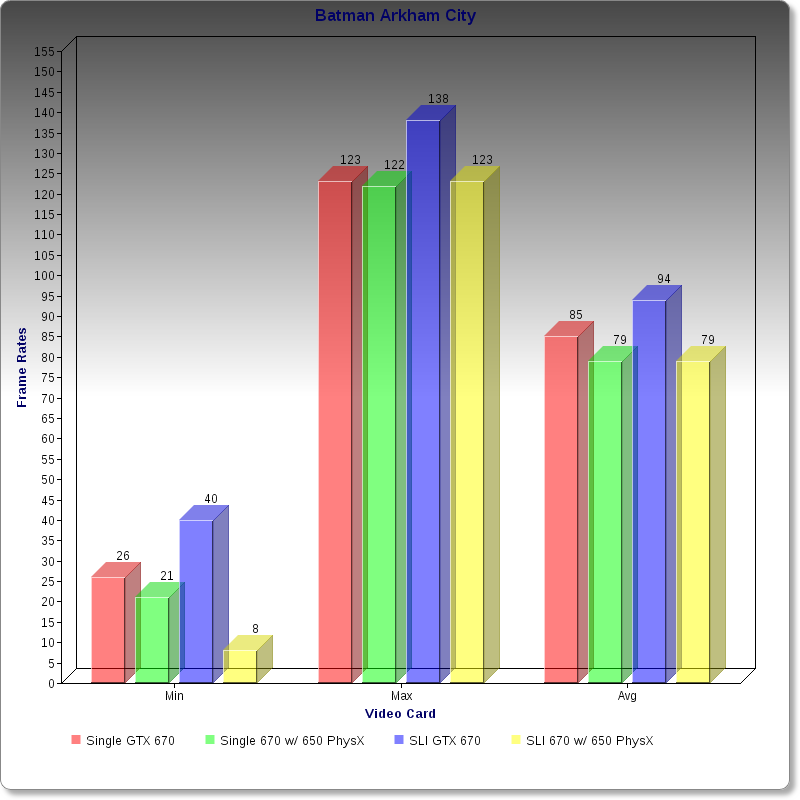 EDITORS NOTE: I was informed by helpful user tito13kfm over at http://reddit.com/r/buildapc that 3dMark 2011 does not take PhysX into account, and thus the originally posted 3dmark Scores have been nullified and removed. Instead, I’m using the amazing game Batman: Arkham City which does use PhysX and has an incredible built in Benchmark utility which will be featured in my reviews from now own. Rocksteady, you owe tito13kfm $19.99 since he convinced me to buy the game today!